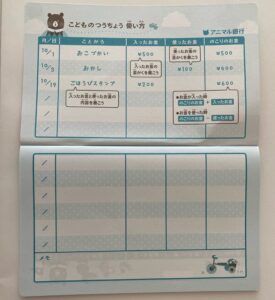 使っているのは、なんと100均(セリア)で買える「こどものつうちょう」。